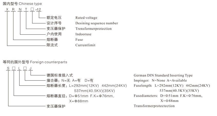 Is gléas cosanta é an Fiús Ardvoltais XRNT PT Current-Limiting Fuse atá deartha le haghaidh claochladáin voltas (PT) agus ciorcaid leictreacha ardvoltais. Is í an phríomhfheidhm atá aige ná sruth an locht a theorannú agus cur isteach go tapa ar dhálaí neamhghnácha leictreacha sula ndéanann siad damáiste do chlaochladáin nó do phríomhchodanna eile.